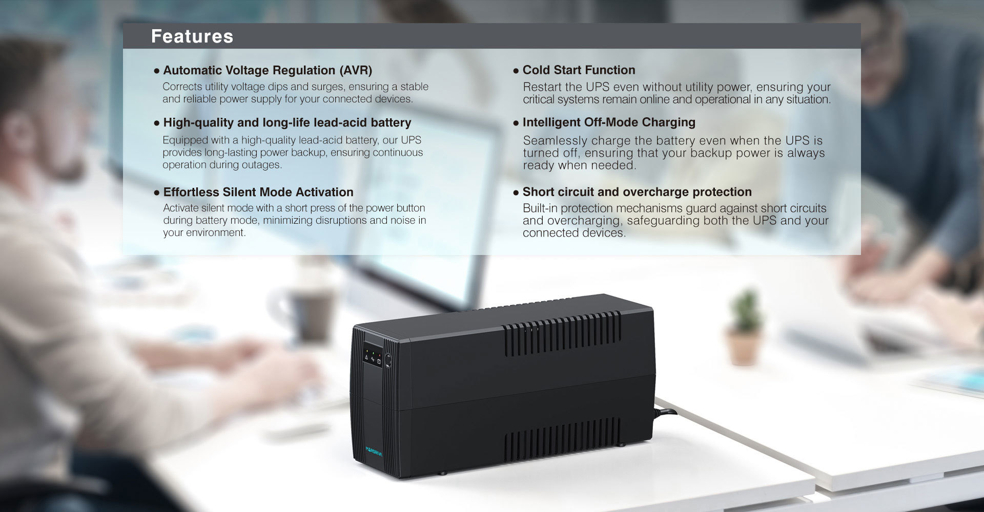 • Функция холодного запуска позволяет перезагрузить ИБП даже при отсутствии сетевого питания